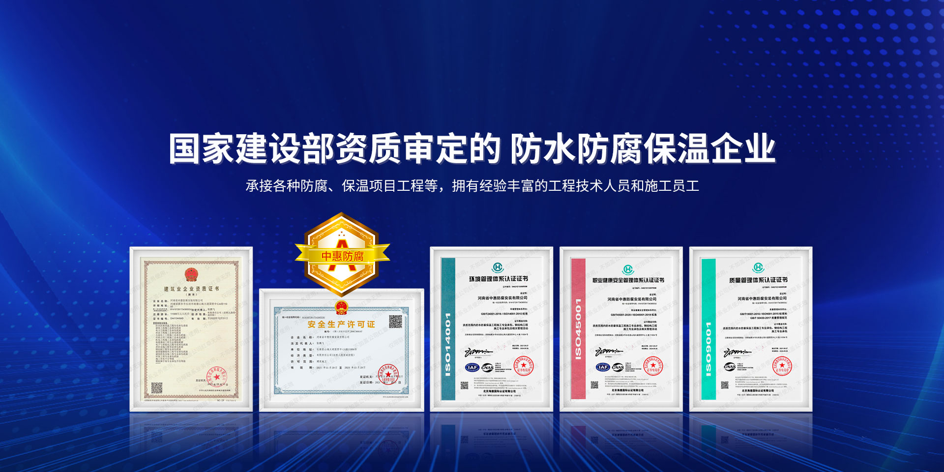 公司經營范圍:防水防腐保溫工程;消防設施工程;建筑裝修裝飾工程;建筑機電安裝工程;電力工程;建筑工程;石油化工工程;工業清洗工程;油罐清洗工程;鋼結構工程;環保工程;模板腳手架工程;電纜防火封堵、防污閃噴涂、外墻外保溫工程;各類施工勞務作業;設備維修、船舶鉚焊、涂裝;電力工程材料、建材、防水材料、防火材料、防腐保溫材料銷售,并相繼通過了GB/T19001-2008idtISO9001:2008GB/T50430-2007質量管理體系認證證書。GB/T24001-2004idtISO14001:2004環境管理體系認證證書。GB/T28001-2011idtOHSAS18001:2007職業健康安全管理體系認證證書。公司是中國防腐蝕于防護協會、中國施工企業管理協會、電力協會和中國鋼結構防水協會會員單位。 公司的經營業務涵蓋了石油、化工、電力、冶金、煤炭、船舶、國防、燃氣、水利、環保、交通運輸、航空及國防軍工和輕紡市政等行業的防腐保溫絕熱設備。鋼結構安裝、防火、防水、金屬噴鍍、聚脲噴繪、陰極保護、防滲透堵漏、玻璃鋼及各種磚版材料襯里、橡膠襯里、煙氣硫和耐酸溶劑腐蝕等工程施工。公司連續十年榮獲“省市先進施工企業”“安全生產先進單位”“重合同,守信用企業”和“AA***資質企業”的稱號。2000年被命名為市級文明單位,2002年被國家工商行政管理局命名為“重合同,守信用的企業”、被中國工業防腐蝕技術協會命名為“防腐蝕企業,能源節約及環境保護領域有豐富的經驗和***的業績。工程一次交驗合格率100%。其中攀枝花鋼鐵公司煉鐵廠四號高爐及熱風爐防腐工程、上海寶鋼公司煤氣柜防腐工程、撫順石油一廠裝置防腐項目、齊魯石化公司稀烴廠高塔防腐工程、吉林化學工業公司煉油廠油罐防腐工程、天津石化熱電廠六號爐頂棚聯絡管保溫工程、大慶油田(太倉)力神泵業工程、中國化學工程第十一建設工程、中原油田勘探局工程、中國石化銷售有限公司華北分部、魯皖輸油管道工程、貴州開磷息烽合成氨工程、陜西黃陵煤化工程、中國石油天然氣西部管道塔里木輸油工程、邯鋼集團邯寶鋼鐵公司煉鐵工程、德州供電工程、吉寶(南通)船廠工程,偃師華潤熱力工程、鄭州熱力總公司。 河南省中惠防腐安裝有限公司愿以豐富的施工經驗,***的技術,***的設備,***的管理,***的服務,竭誠為國內外廣大的用戶提供***滿意、******的工程作品。 我公司愿與國內外同仁一道,團結協作,共同推進防腐蝕行業發展! 公司地址:河南省長垣縣建設路北段360號 固定電話:0373-8866488 郵編:453400 網址:http://www_zhff_com_cn.areter.com